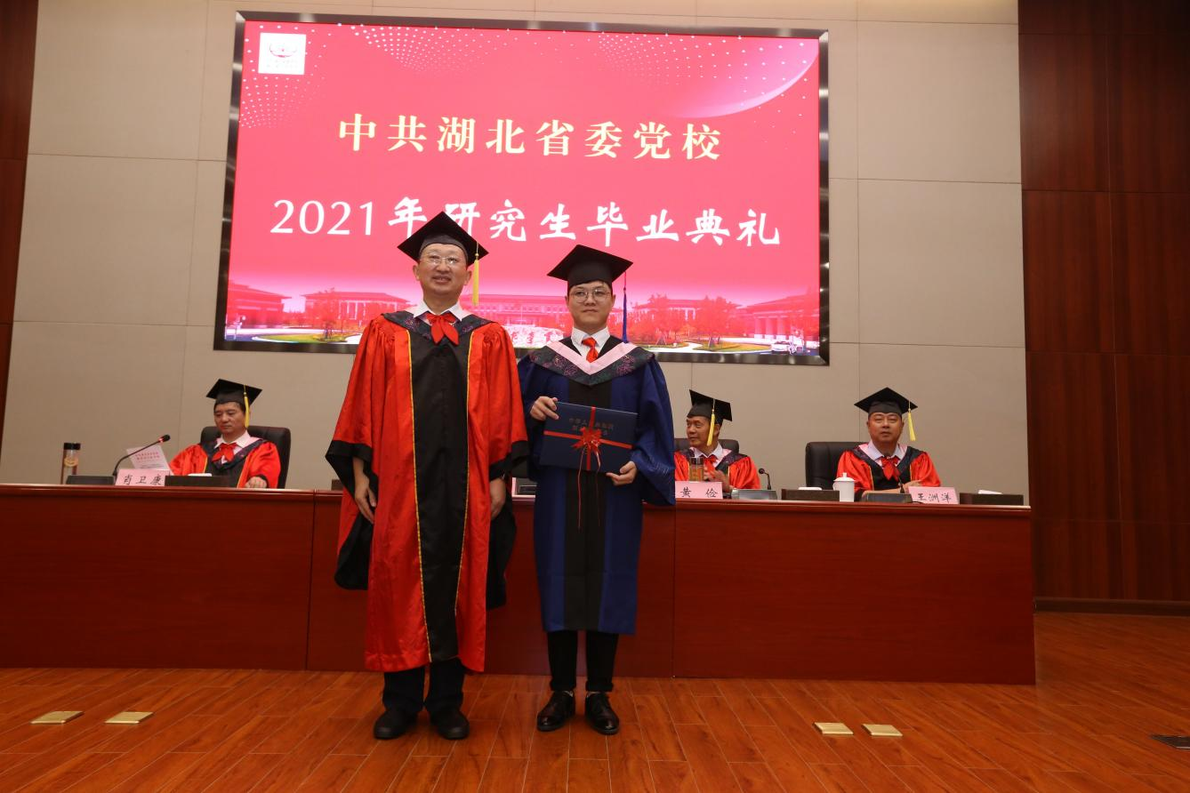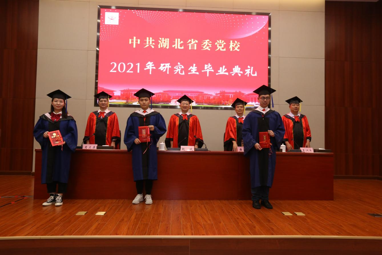 副校(院)长、红安分校(院)校(院)长、湖北红安干部学院(湖北组织干部学院)院长王洲洋主持毕业典礼仪式。副校(院)长肖卫康宣读了学校毕业和学位授予决定和表彰优秀研究生、优秀研究生干部和优秀硕士学位论文作者的决定。校领导为受表彰同学颁发了荣誉证书。副校(院)长黄俭代表学校对全体毕业生提了四点期望:一是始终坚持科学理论指导;二是始终坚持理想信念;三是始终坚持初心使命;四是始终坚持光荣革命传统。