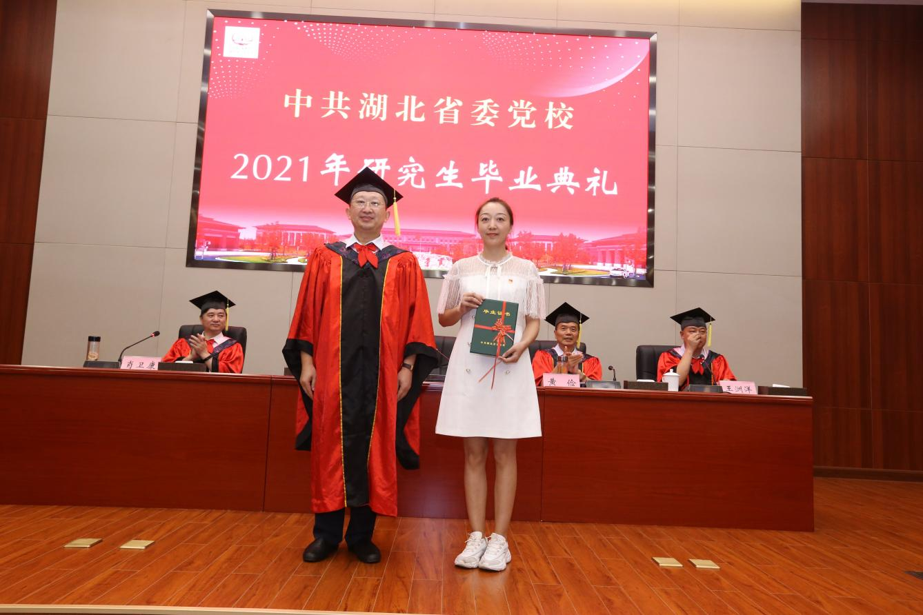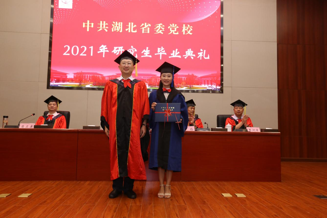 6月29日下午,省委党校隆重举行2021年研究生毕业典礼。省委党校(省行政学院)常务副校(院)长赵斌为获得硕士学位的毕业生拨流苏、颁发学位证书,为毕业的新疆生产建设兵团第五师双河市委托培养研究生颁发毕业证书,并与毕业生合影留念。