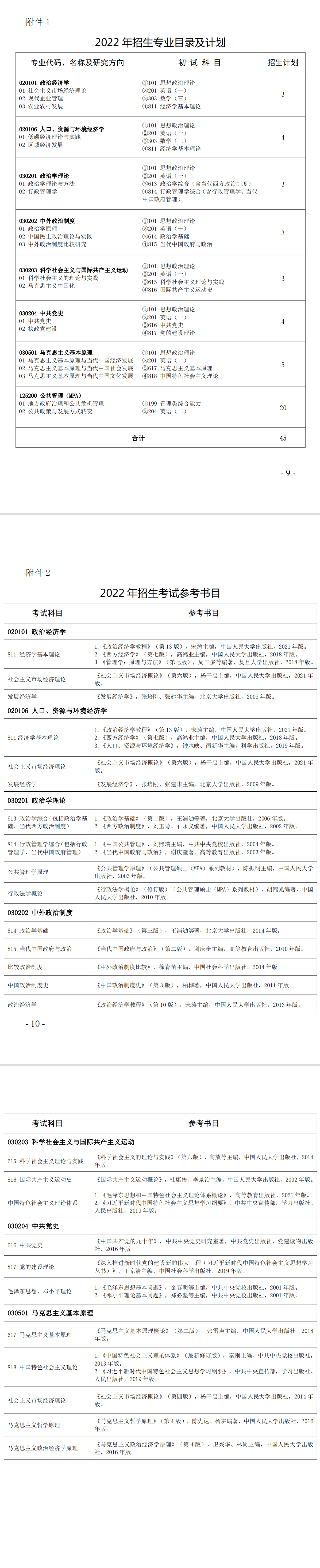 2022年我校计划招收硕士研究生45名,其中全日制非定向就业学术学位硕士研究生25名、非全日制定向就业公共管理硕士(MPA)专业学位研究生20名。实际招生人数以国家下达的计划数为准。