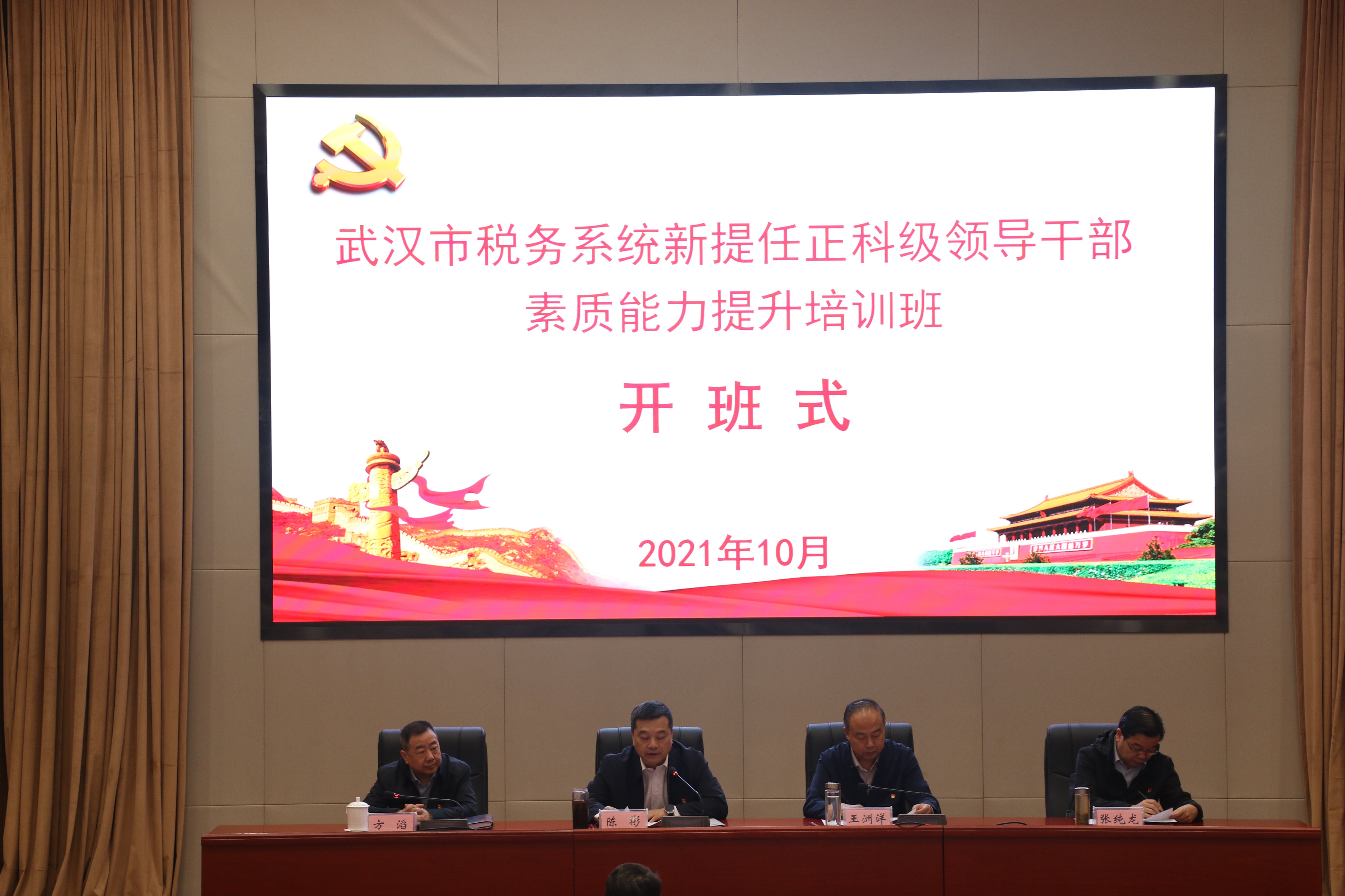 10月8日上午,武汉市税务系统新提任正科级领导干部素质能力提升培训班在中共湖北省委党校(湖北省行政学院)开班。省委党校(省行政学院)副校(院)长王洲洋在开班式上作入学教育,国家税务总局武汉市税务局党委委员、副局长陈彬作开班动员讲话。
