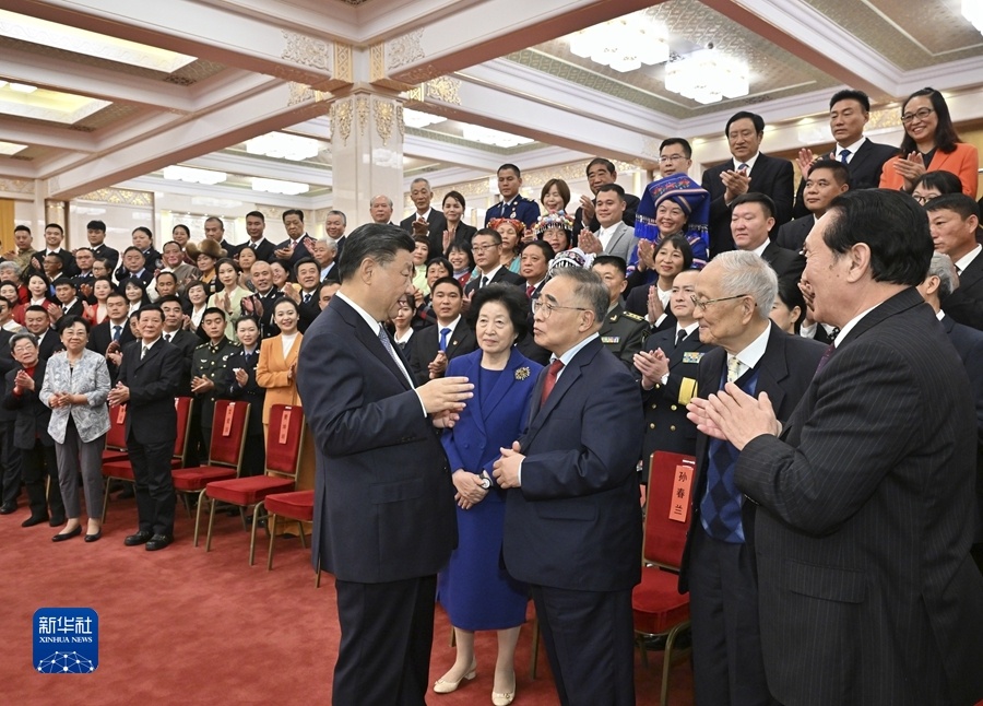 11月5日,党和国家领导人习近平、王沪宁等在北京人民大会堂会见第八届全国道德模范及提名奖获得者。新华社记者 申宏 摄