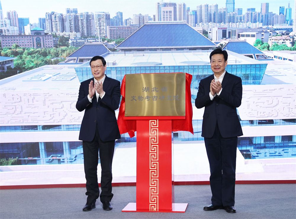 应勇、李群为“湖北省文物考古研究院”揭牌。王忠林、李群致辞。
