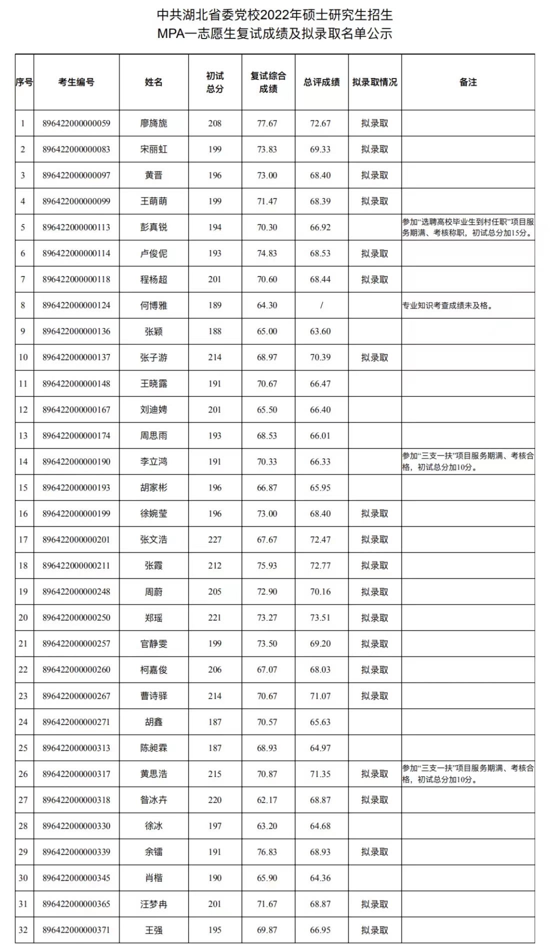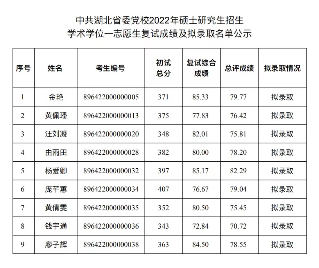 根据教育部《2022年全国硕士研究生招生工作管理规定》(教学函[2021]2号)、《关于做好2022年全国硕士研究生招生录取工作的通知》(教学司[2022]4号)精神,现将我校2022年硕士研究生招生一志愿上线生复试成绩及拟录取名单公示如下。