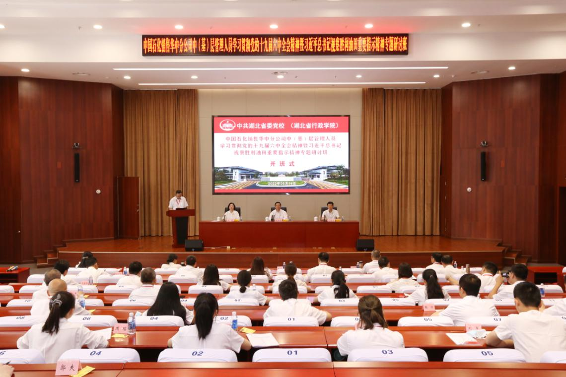 2022年6月13日至6月19日,中国石化销售华中分公司中(基)层管理人员学习贯彻党的十九届六中全会精神暨习近平总书记视察胜利油田重要指示精神专题研讨班(第一期、第二期)在我校成功举办。中国石化销售华中分公司党委书记、分公司代表张洪奎出席开班式并作开班动员讲话。张洪奎为学员讲授“认真学习贯彻习近平总书记重要讲话精神 抓实抓好公司青年工作”第一课。中国石化销售华中分公司党委副书记、纪委书记、工会主席王飞出席第二期研讨班开班式、作开班动员讲话,并为学员作专题辅导报告。省委党校(省行政学院)二级巡视员吴维明作入学教育。