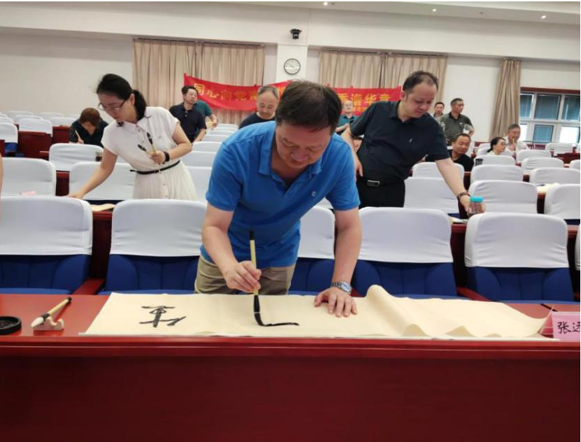 活动现场,学员们纷纷挥毫泼墨,用笔墨书写学习心得,传承书法传统文化。“同心筑梦”“松龄长岁”“风清气正”,毛笔在宣纸上游走,一幅幅众彩纷呈的书画作品跃然于纸上。大家相互展示,上台点评,学员们的书法热情持续高涨,比学赶超氛围浓厚,现场洋溢着浓郁的笔墨之香。