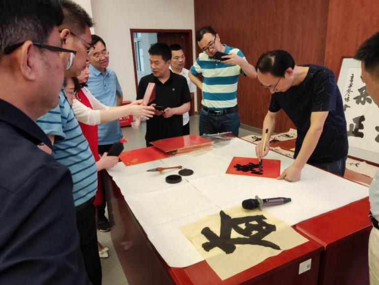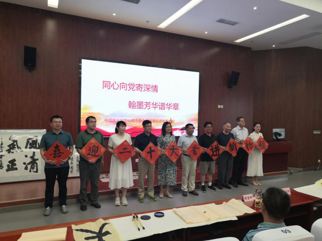 为弘扬中华优秀传统文化,迎接党的二十大,6月19日,生态文明班以“喜迎二十大、奋进新征程”为主题,邀请仙桃民盟书画研究院专家开展“讲-品-练-评”精品书画鉴赏活动。