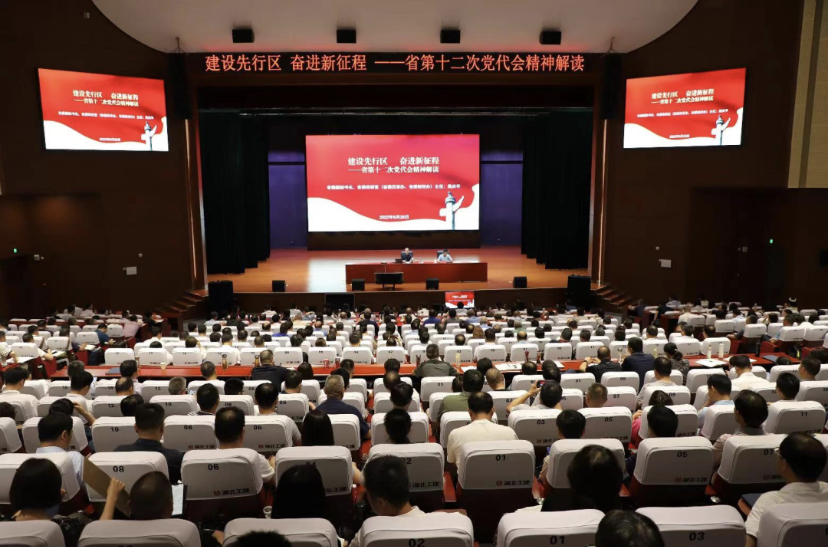 6月26日,省委副秘书长、省委政研室(省委改革办、省委财经办)主任吴庆华来校作《建设先行区 奋进新征程——省第十二次党代会精神解读》专题辅导报告。副校长汤红兵主持。