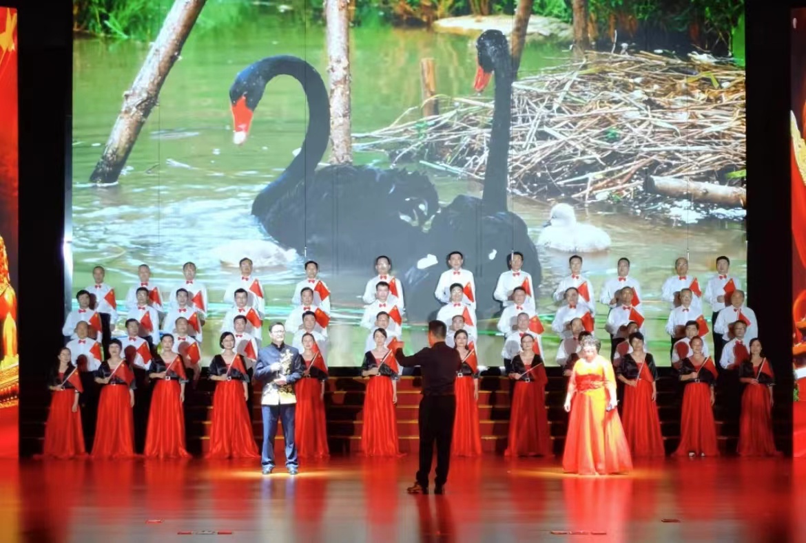 晚会在全场高唱《歌唱祖国》嘹亮歌声中落幕。“建设先行区 奋进新征程”文艺晚会带领大家回望峥嵘岁月,传承红色信仰,激扬使命担当,唱响共产党好、社会主义好、改革开放好、伟大祖国好的时代主旋律;激励全体师生,立足新发展阶段,贯彻新发展理念,为湖北建设全国构建新发展格局先行区再立新功!