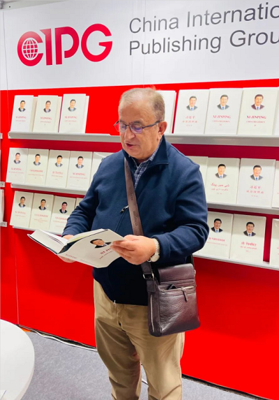 在展区显著位置设计的宣传墙上,中国外文局(中国国际传播集团)所属中国国际出版集团重点展示了《习近平谈治国理政》第四卷中、英文版,同时展销的还有《习近平谈治国理政》第一至三卷以及《之江新语》《摆脱贫困》等习近平总书记著作多语种版。