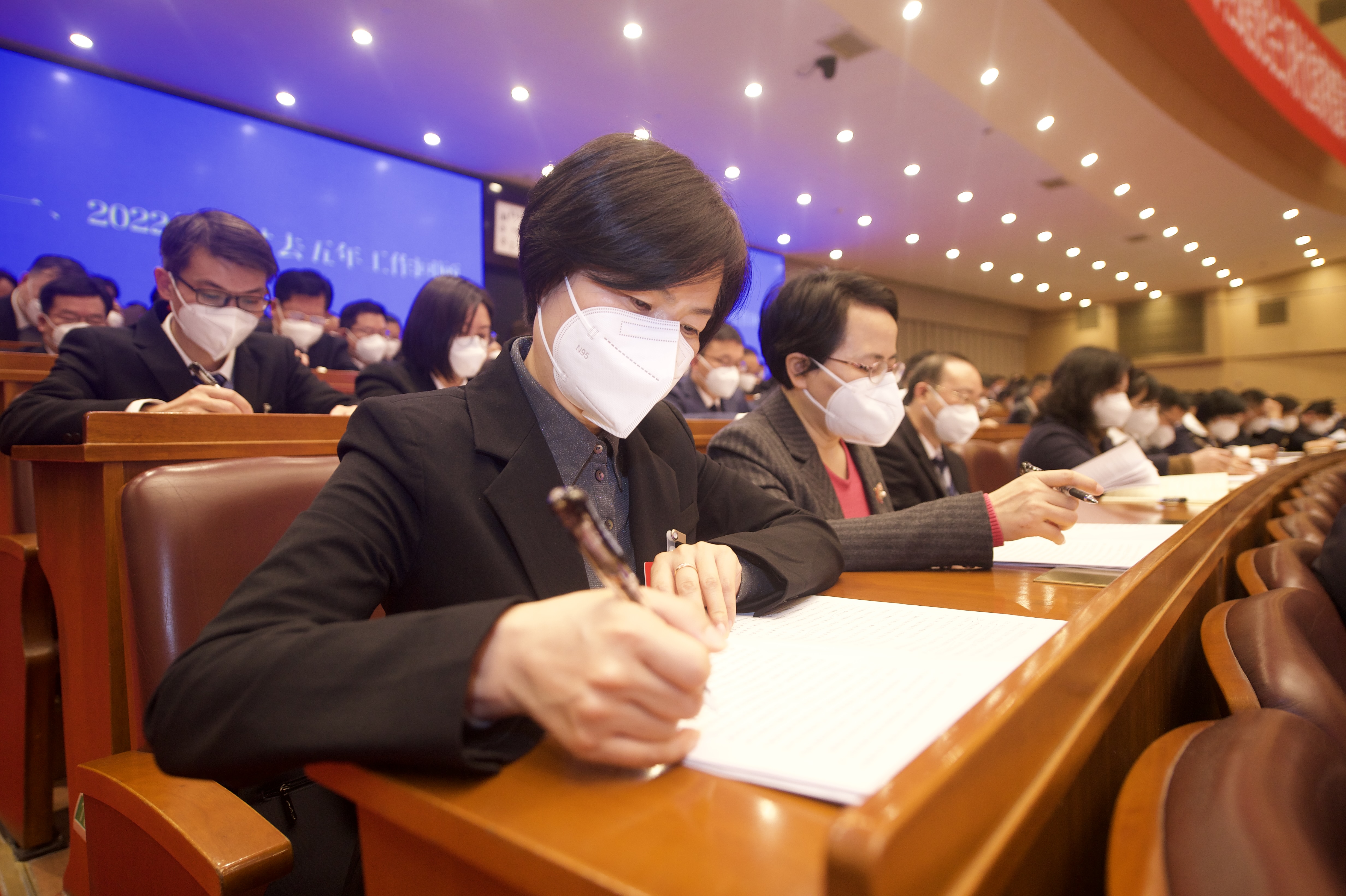 图为湖北省第十四届人民代表大会第一次会议开幕会现场。