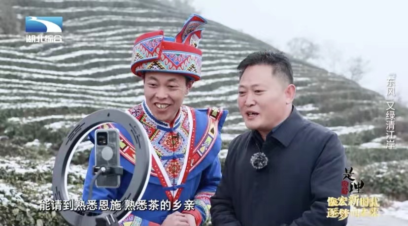 如今的徐国泰是名专职网红主播,田间地头、山岗茶园都是他的主场。能请到熟悉恩施、熟悉茶的乡亲帮忙直播推介茶叶,这对于做了几十年茶的茶园主人谭明智来说,也是以前不敢想的事。从前,从茶场到店铺,运输加上店面费用,对于老谭来说,每年都是一笔不断上涨的开销。尽管这些年,茶场规模扩大了,可茶叶价格却一直没有什么变化,利润也几乎没有增长。2021年,恩施迎来了又一轮东西部协作。老谭听说村里来了个工作队,他挺好奇,工作队是来做什么的呢?这次,武汉接手杭州,继续推动恩施的区域协调发展工作,一支支工作队被派驻到村。老谭所在的马者村,来的是湖北省政府办公厅驻马者村工作队。