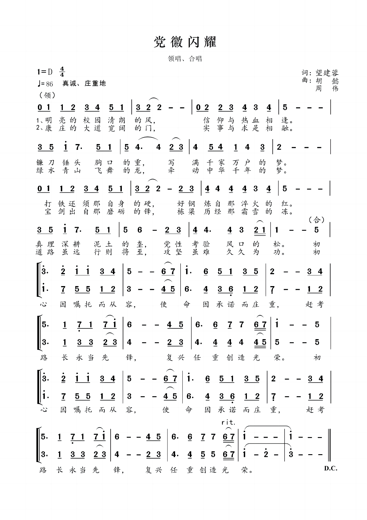 “希望通过音乐的方式,分享我们党员的故事、讲出党校学员的故事。”鲁勇说,在为《党徽闪耀》作曲时,他们试图将校园、流行和经典三种音乐风格相结合,既体现时代性、时尚性,又体现庄严性、典雅性。“不仅希望能反映出党校学员朝气蓬勃的精神风貌,还能展现出作为新时代党员领导干部坚定不移的初心使命。”