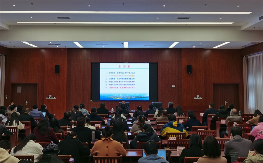 胡硕兵教授以“运用系统思维来指导教学、科研与资政工作”为题,结合自己在教学、科研、决策咨询等方面的深入研究,从系统思维的角度,为大家厘清了“教研咨学”的深层次关系。并结合自己在国家社科基金申报评审领域的深入思考和实践经验,对国家社科基金申报流程和关键环节进行了详细解读。