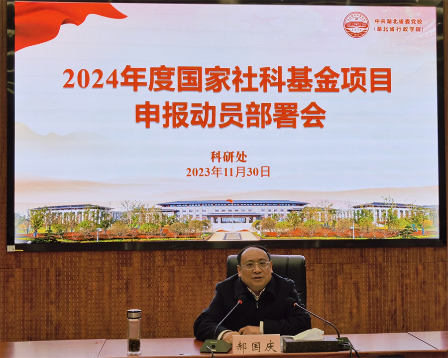 为加强有组织的科研,推进2024年度国家社科基金项目申报工作的顺利开展,切实提升项目申报质量,11月30日上午,我校(院)举办“习近平新时代中国特色社会主义思想”系列学术讲坛(第七期)暨2024年度国家社科基金项目申报动员部署会,特邀中国井冈山干部学院教授胡硕兵作专题辅导。校(院)全体专技人员、硕士研究生,全省市州党校、新疆兵团五师党校和博州党校教研人员线上线下同步参会。会议由校委委员、教育长郝国庆主持。
