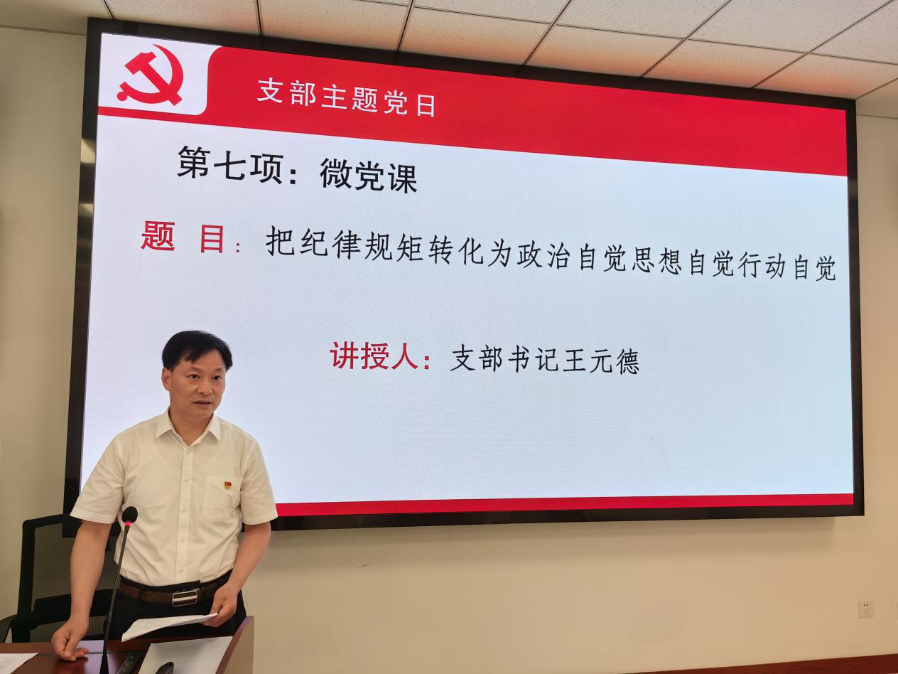 支部书记王元德以《把纪律规矩转化为政治自觉思想自觉行动自觉》为题,为大家讲授了一堂生动的微党课。