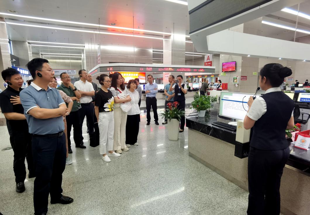 在审批大厅,学员们跟随讲解,了解各类办事窗口的服务功能以及多种智能化办事终端的操作流程。据介绍,目前这里已有38个市级行政审批部门、15个公共服务单位和5家公共资源交易机构进驻,可集中办理1667个行政审批和公共服务事项。通过前台窗口集中收件、后台部门分类审批这一模式,上百项业务在“全生命周期”综合窗口可以实现“一窗办理”。