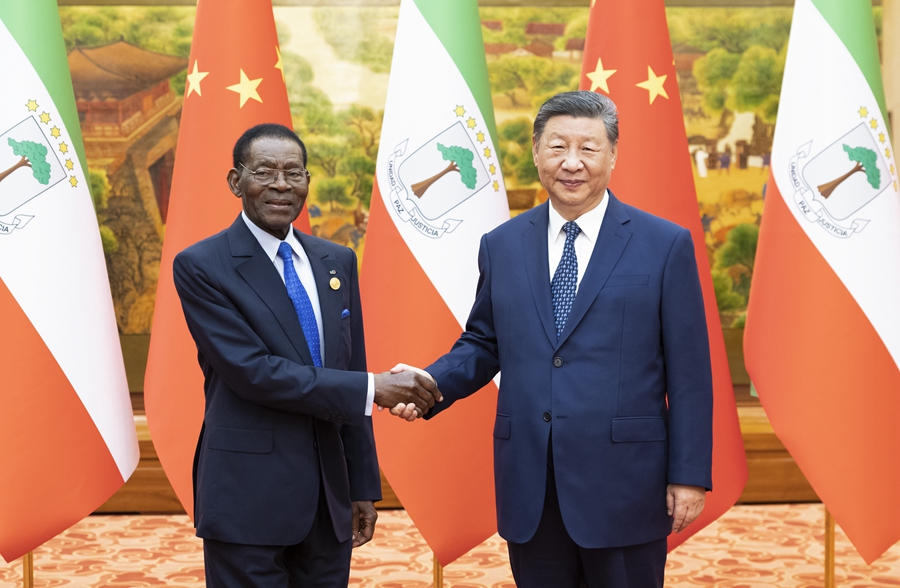 习近平强调,中国和赤道几内亚是好朋友。高水平的政治互信、全方位的务实合作、深厚的人民友谊是两国关系的主要特征。近年来,两国各领域合作扎实推进,在国际事务中密切协作。中方愿同赤道几内亚坚定相互支持,拓展务实合作,深化防务安全合作,助力赤道几内亚经济多元化发展,在推进各自国家现代化的道路上携手前行,开辟中赤几全面战略合作伙伴关系的新前景。
