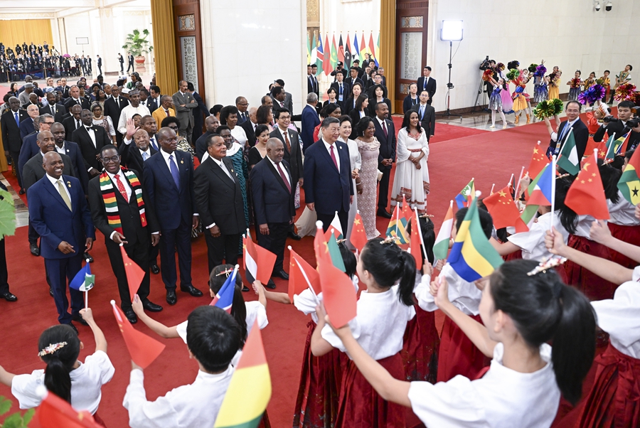 9月的北京,秋高气爽。雄伟的人民大会堂内,中国国旗和中非合作论坛成员国国旗以及非洲联盟旗帜交相辉映。