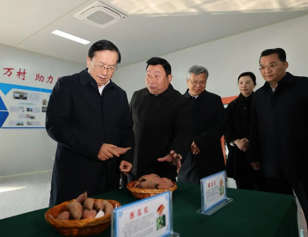杏花乡龙潭寺村近年来积极引进经营主体,大力发展红薯等特色产业,村集体经济不断壮大,农户持续稳定增收。王忠林、李殿勋走进瑞沣农业红薯科技小院,察看红薯等特色农产品展示,详细询问红薯组培脱毒、精深加工、市场开发等情况,走进实验棚了解红薯种苗繁育流程。王忠林对红安县开展校企合作、以科技创新带动红薯产业全链条发展的做法给予肯定,要求当地继续挖掘特色资源,做足“土特产”文章,大力发展乡村富民产业。他强调,要充分发挥湖北科教、人才优势,推进农业科技力量协同攻关,加快科技成果大面积推广应用,让科技为农业现代化插上腾飞的翅膀。