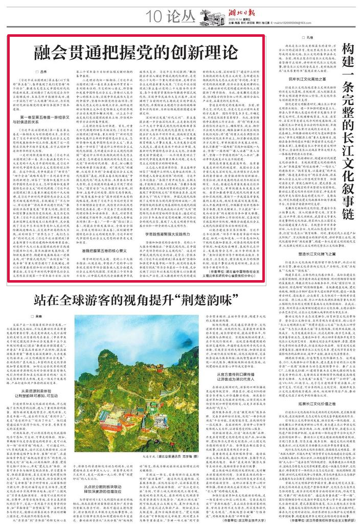 11月14日,《湖北日报》10版论丛板块刊发中共湖北省委党校(湖北省行政学院)经济学与经济管理教研部副主任、副教授吕伟文章——《融会贯通把握党的创新理论》。现予以转载。