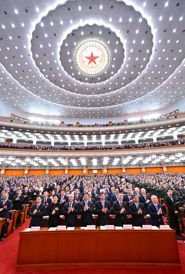 3月9日,十四届全国人大四次会议在北京人民大会堂举行第二次全体会议。新华社记者 饶爱民 摄