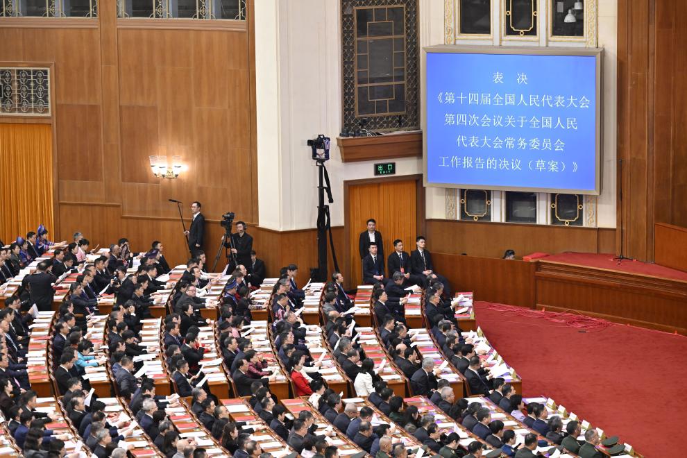 3月12日,第十四届全国人民代表大会第四次会议在北京人民大会堂举行闭幕会。新华社记者 翟健岚 摄