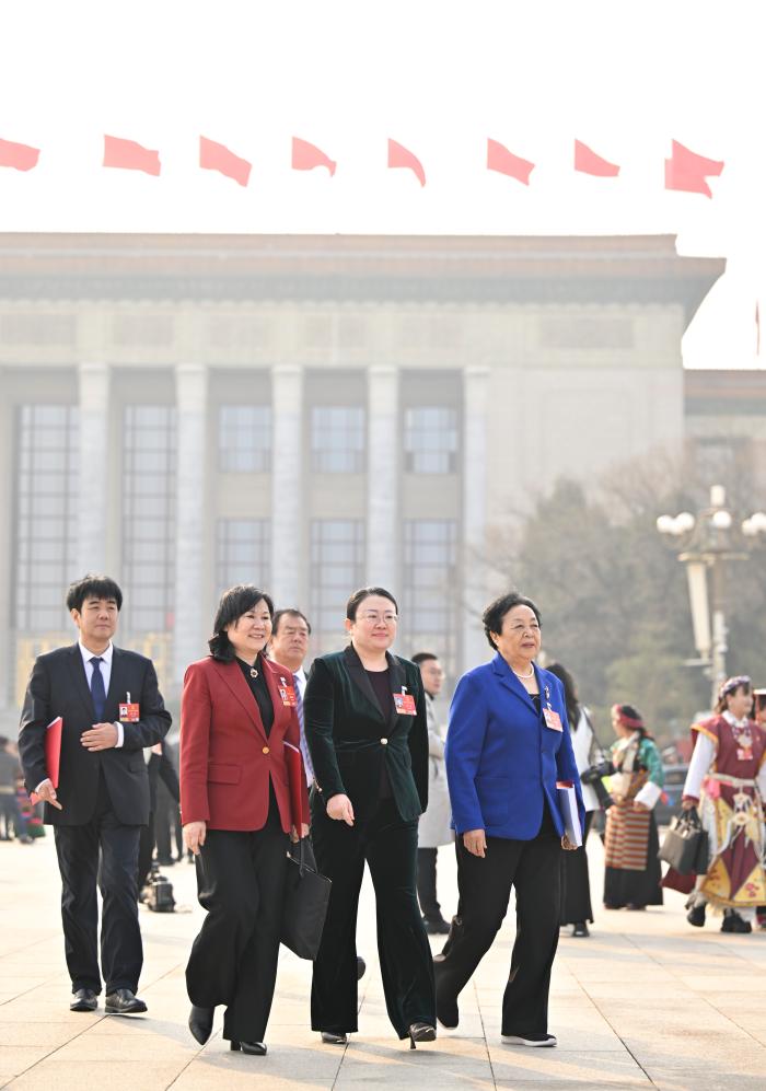 3月12日,第十四届全国人民代表大会第四次会议在北京人民大会堂举行闭幕会。这是闭幕会后,代表们走出人民大会堂。新华社记者 陈晔华 摄